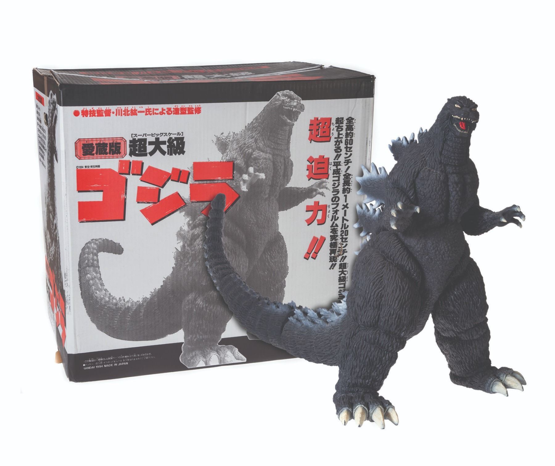 1994. Bandai Big Scale Super Premium Godzilla Vinyl Figure w/ Box and paper. 23. 5”x17”x45”. VG+ minor paint wear on claws and fins.
