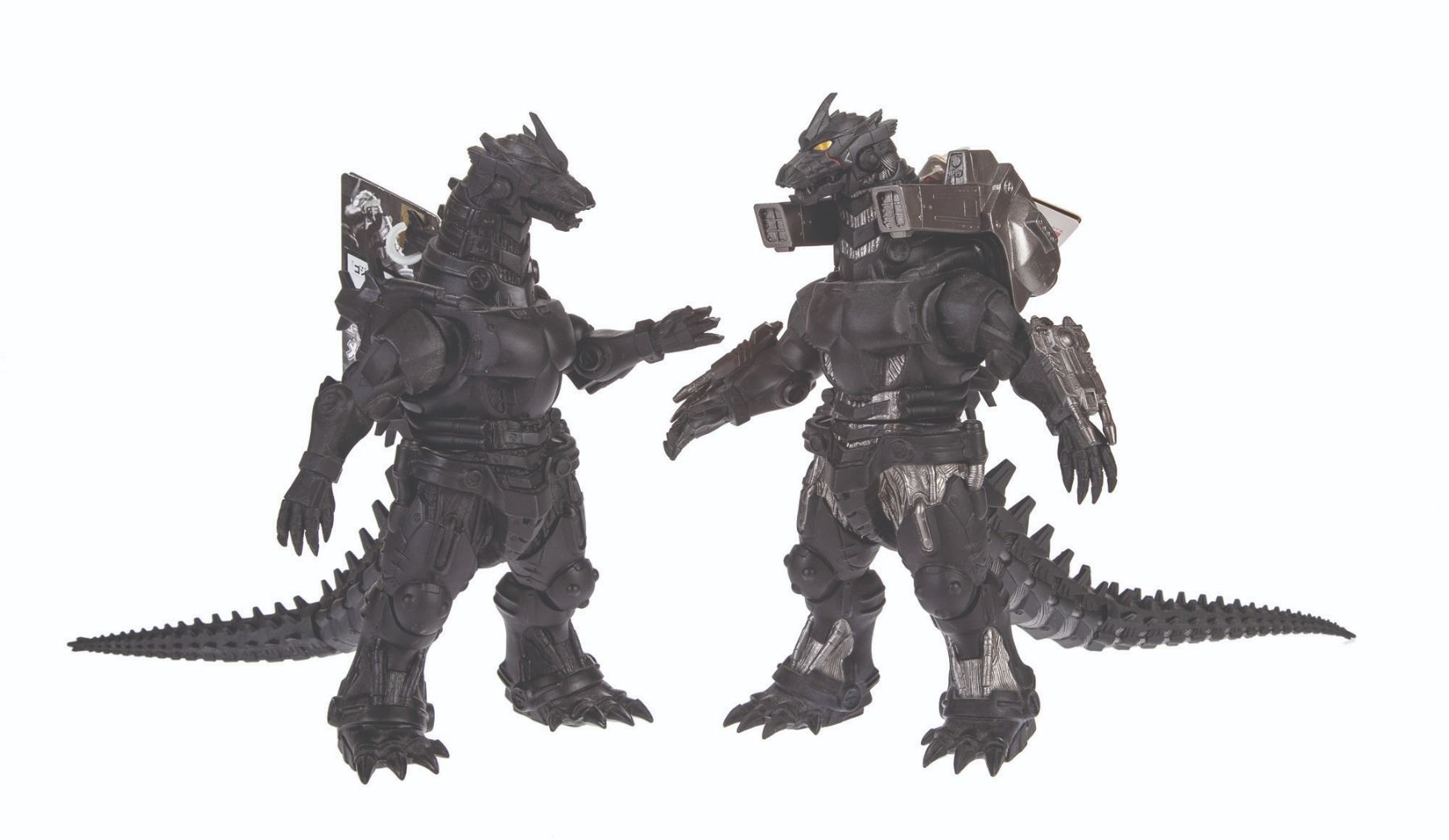 2002. Mechagodzilla Bandai Vinyl Figures w/ tags Theatre Exclusive & Link Science Exclusive Lot of 2. 9” tall figures. VG+.