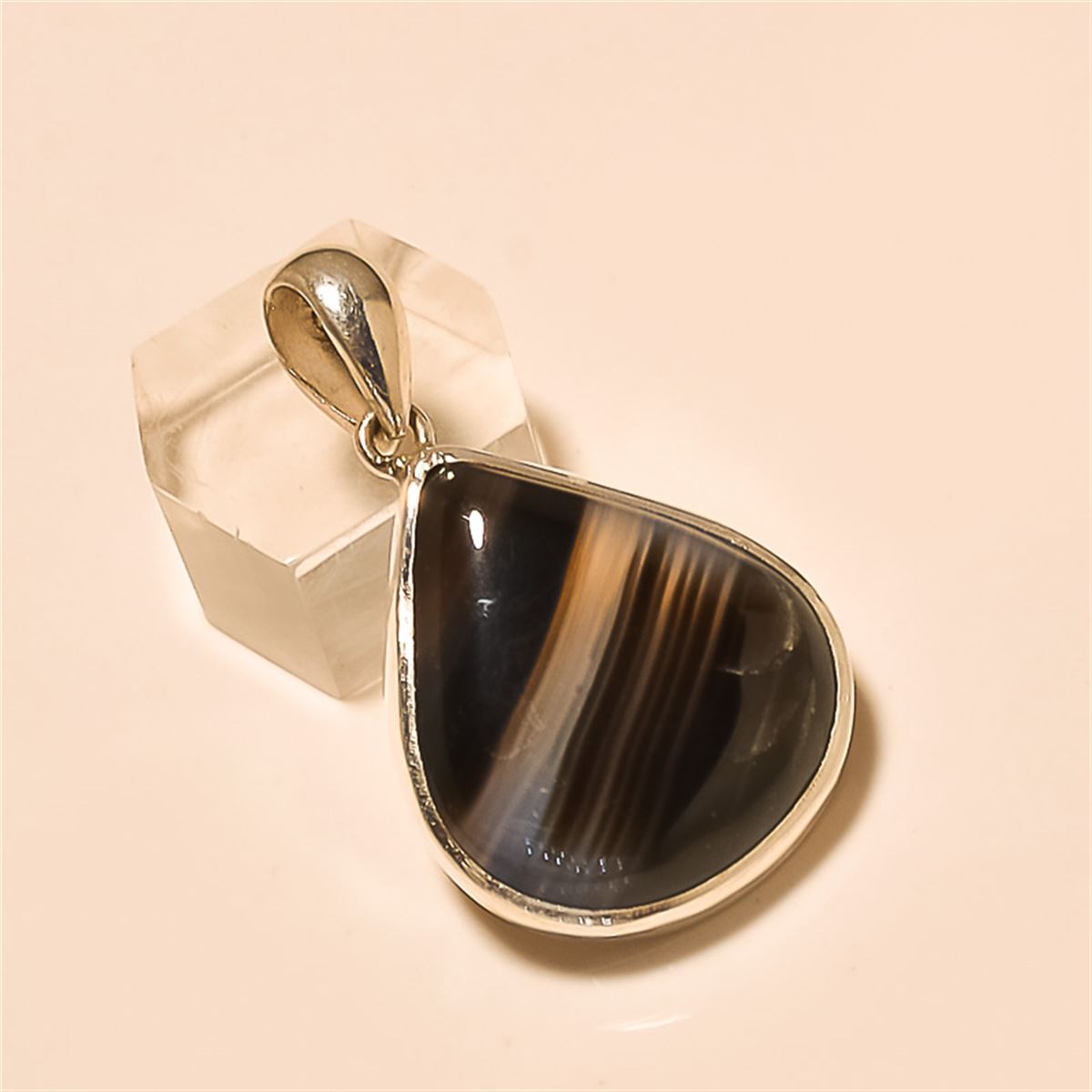 Banded Agate Pendant Solid Sterling Silver Length:1.5 inch Weight:10 gram #P-147