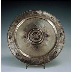 Bandeja circular en plata con cabujones en esmalte, siguiendo modelos españoles del S.XVII, h.1900