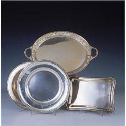 Bandeja circular en plateado. Di metro: 31 cms.Decorada con fasces encintados. Salida Euros 90 - Salida PTS 15.000