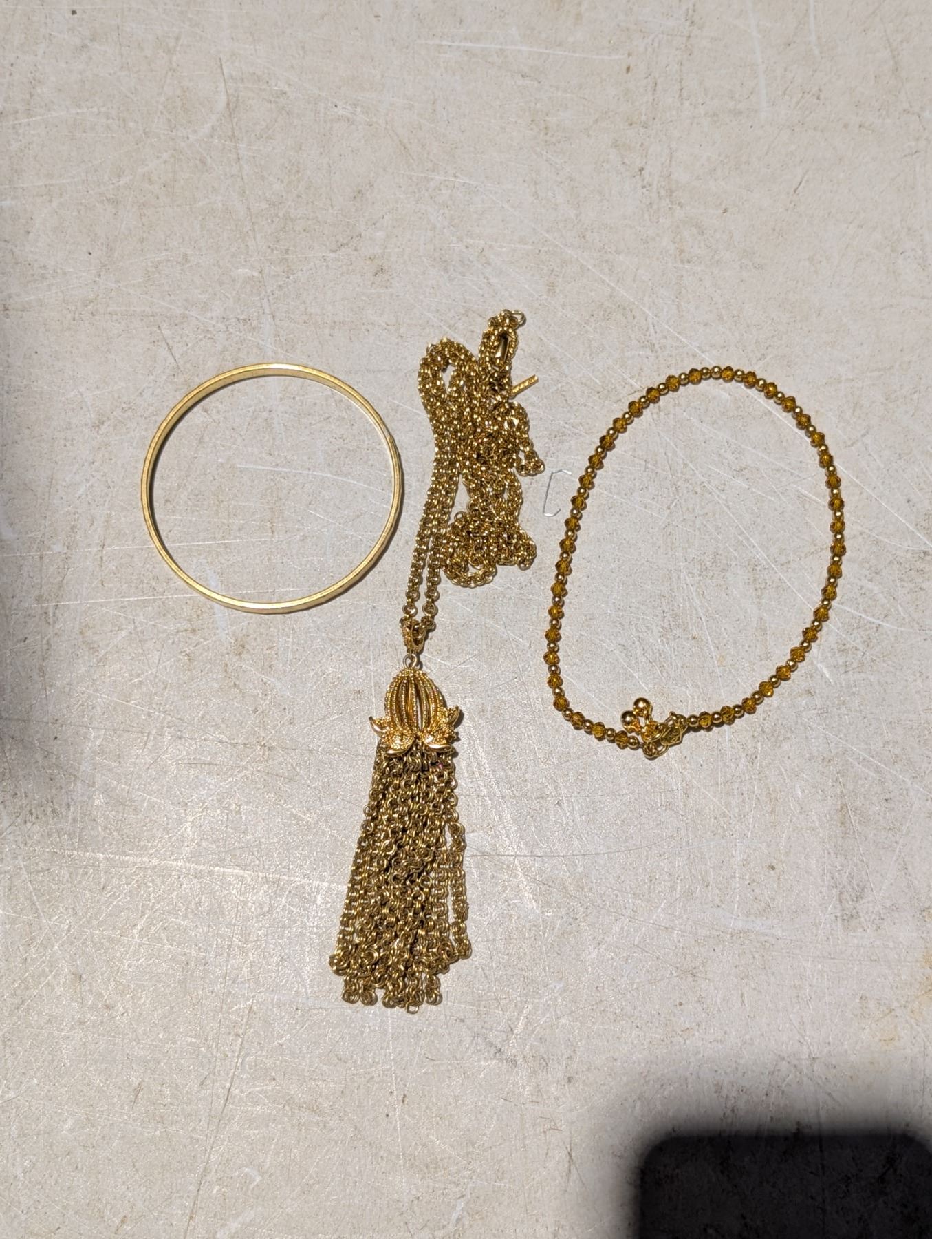 Bangle bracelet Monet, 22KT Gold Chain Brooch