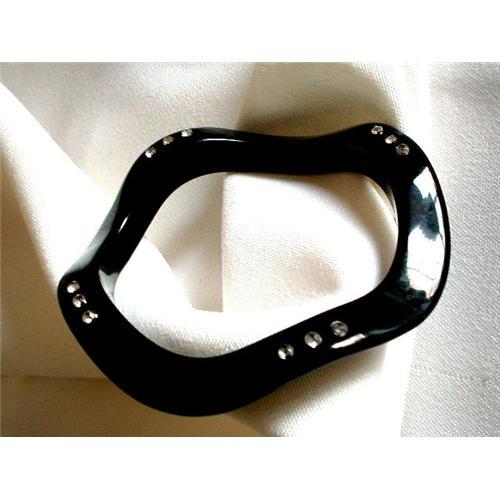 <tr><td>Title:Bangle of Blk. Wavy Lucite & Rhinestones</td></tr>