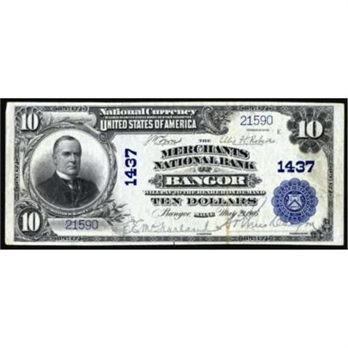 Bangor,ME $10 1902 Plain Back Fr 624 Merchants NB