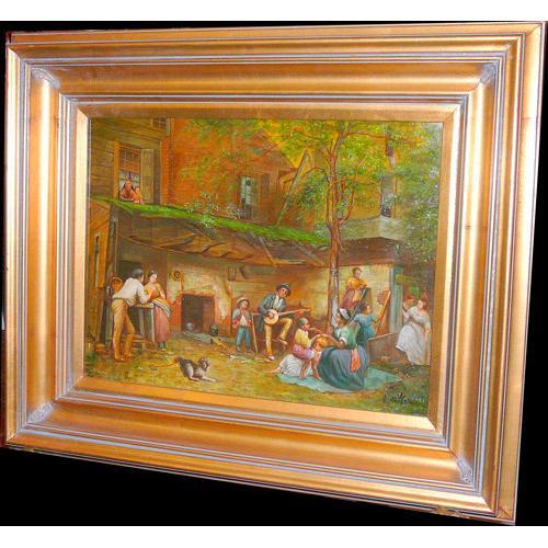 Very interesting compostion of a gathering with variety of interests. Beautiful shading and detailing. Signed by R. Neilson.