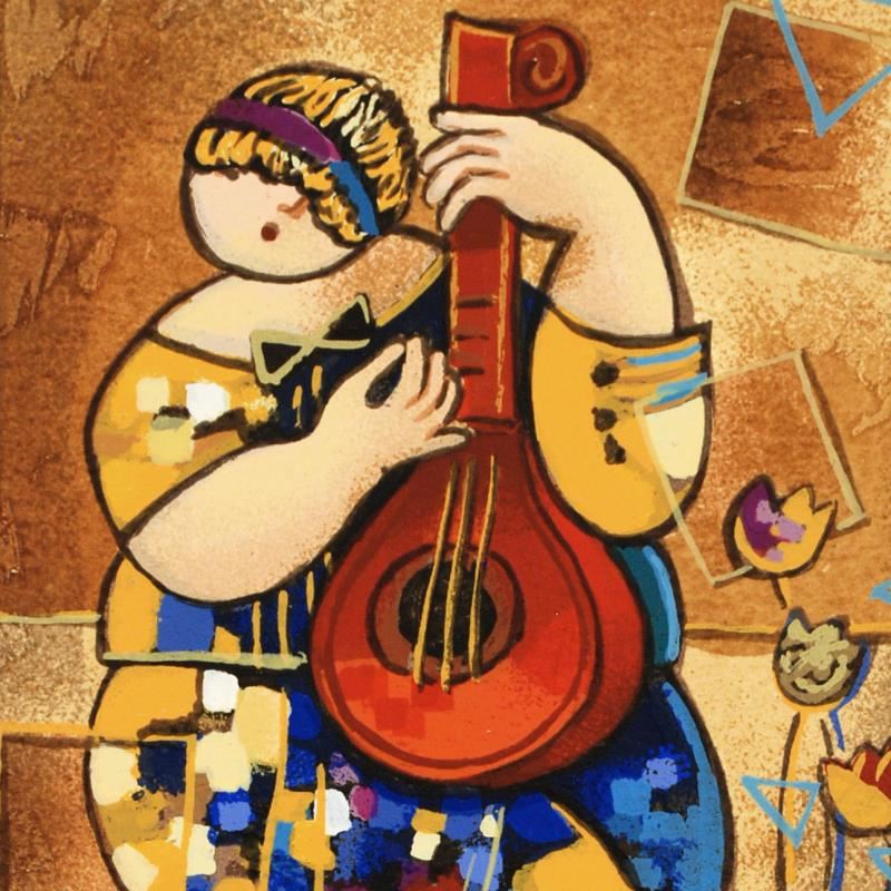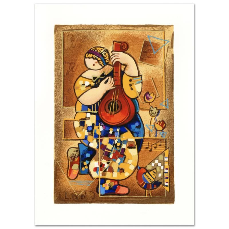 "Banjo Song" is a limited edition serigraph on paper by Dorit Levi, numbered and hand signed by the artist. Includes Certificate of Authenticity. Measures approx. 7.5" x 10" (border), 5.5" x 8.5" (image).