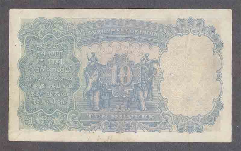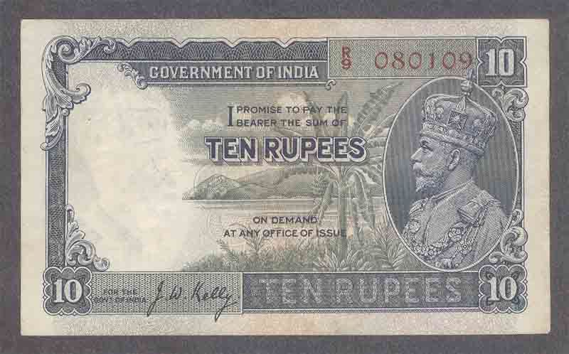 Bank Note of Ten Ruprees of King George V of 1933.