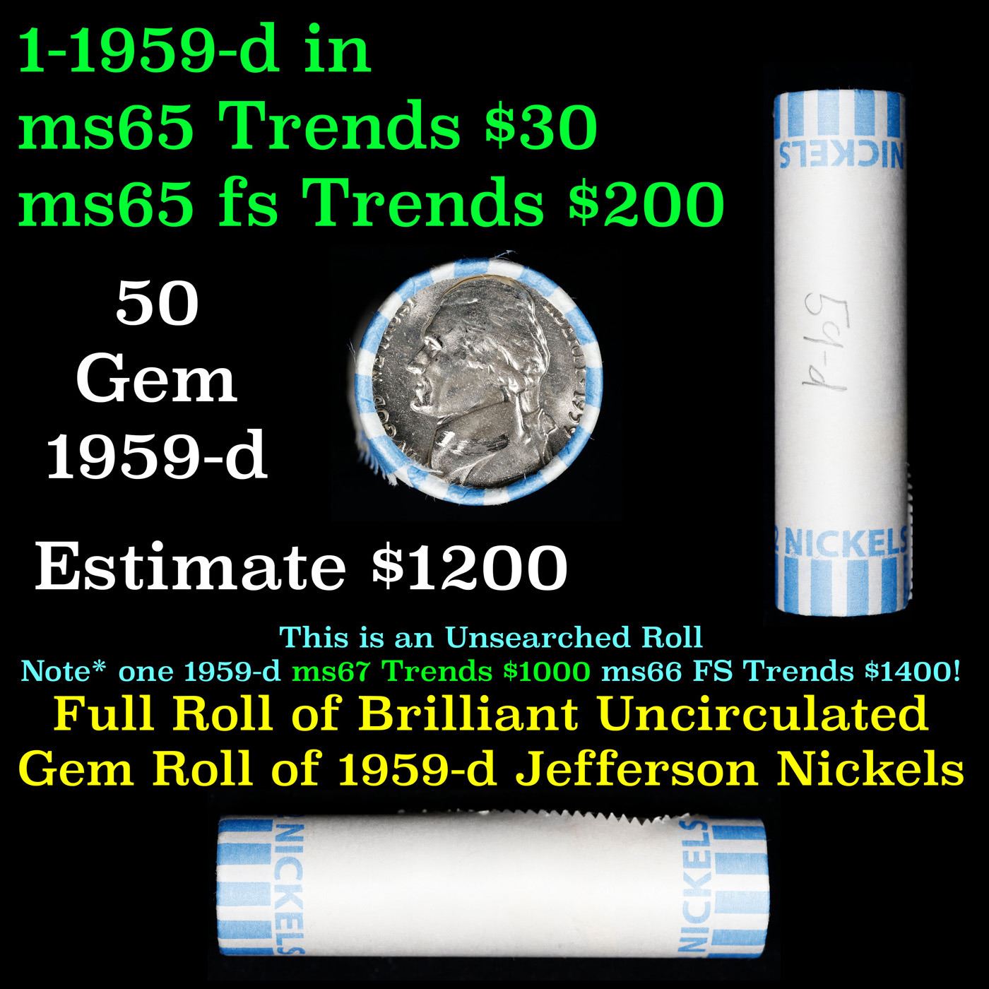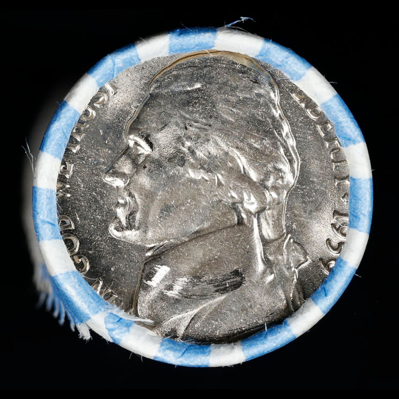 Bank Style Shotgun Uncirculated Jefferson 5c roll, 1959-d 40 pcs . A terrific Shotgun roll of unsearched uncirculated Jefferson nickels. Most if not all coins should be gem or better.