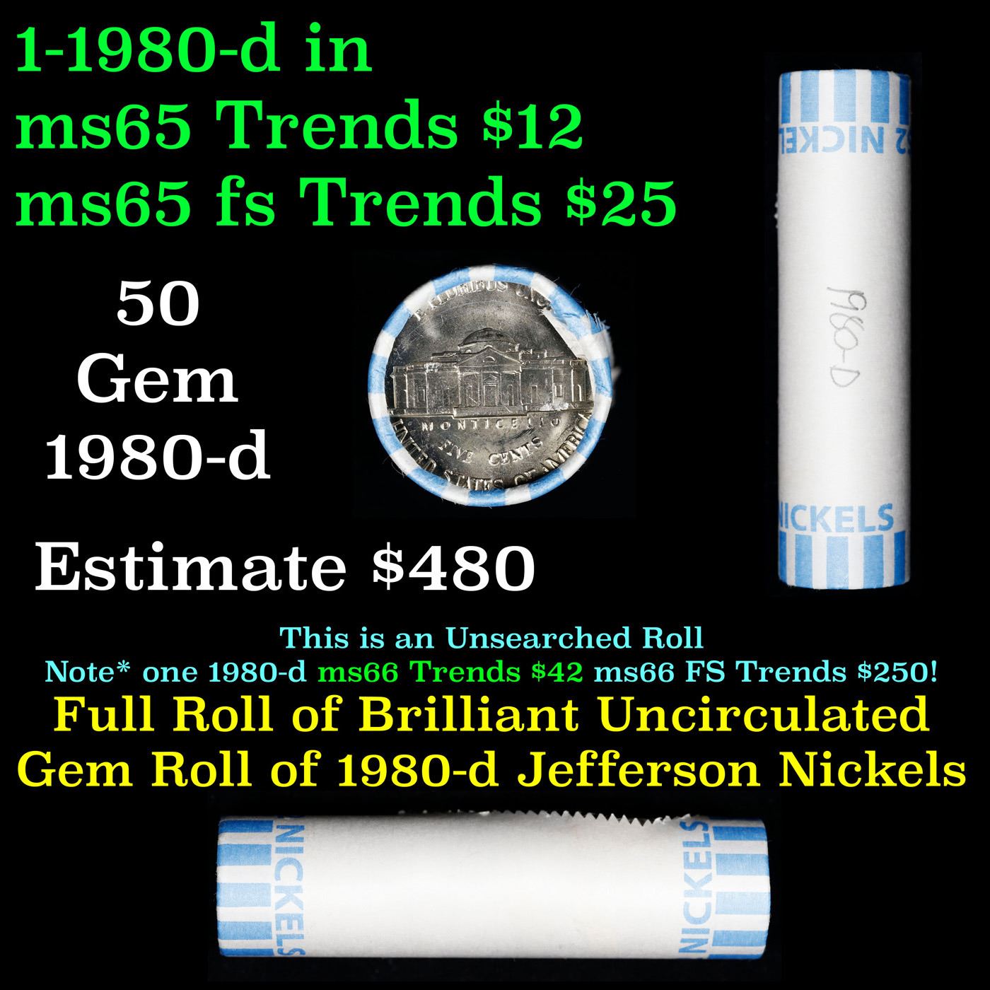 Bank Style Shotgun Uncirculated Jefferson 5c roll, 1980-d 40 pcs