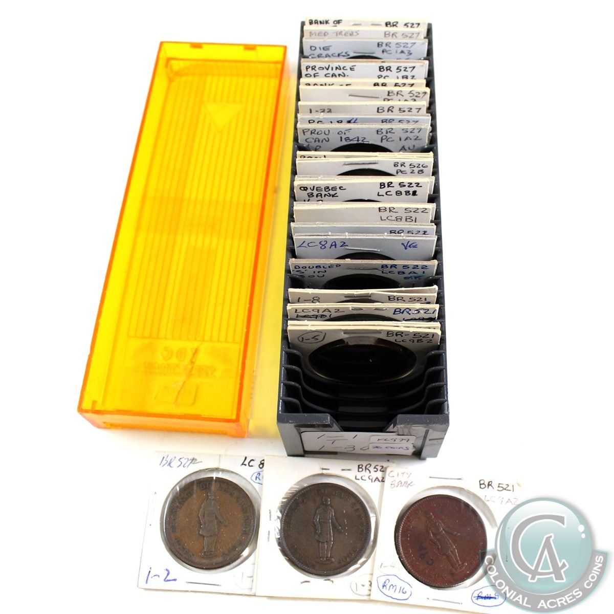 Lot of 26x Canadian Colonial Tokens from Upper and Lower Canada in various grades and condition, many in VF or better. Breton #520-527. Tokens are in original Holders from Collector and have been attributed, please note varieties do exist and information on holders may not be current and or accurate. Recommend viewing this lot. 26pcs.