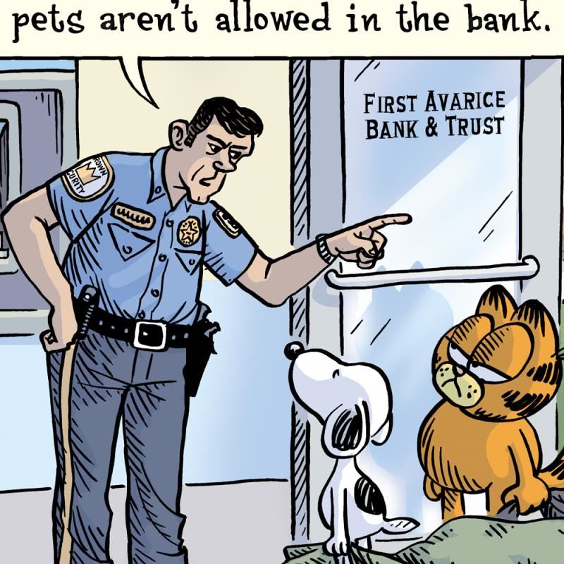 "Bank" is a limited edition giclee on paper by Dan Piraro, creator of the critically acclaimed and award winning comic strip, Bizarro! This piece is numbered and hand signed by the artist and includes aletterof authenticity. Measures approximtely 8" x 15" (image).