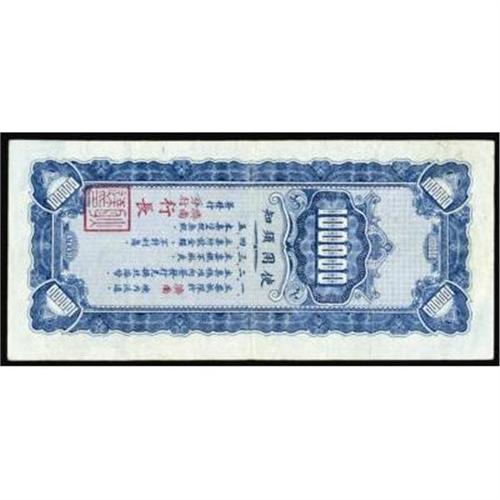 <style type="text/css"> body, td, th { font-family: Arial, Helvetica, sans-serif; font-size: 12px; color: #482424; margin: 0px; padding: 0px; } #header { background-image: url(http://www.bowersandmerena.com/ebay/images/template_v3_01.gif); clear: both; background-color: #590303; border-top-width: 2px; border-top-style: solid; border-top-color: #B38C4F; } #header #header_wrapper { height: 75px; clear: both; width: 800px; margin-right: auto; margin-left: auto; background-image: url(http://www.bowersandmerena.com/ebay/images/template_v3_03.gif); background-repeat: no-repeat; background-position: right; color: #F3EDCC; } #header #header_wrapper #header_logo { float: left; height: 75px; width: 444px; background-image: url(http://www.bowersandmerena.com/ebay/images/template_v3_02.gif); background-repeat: no-repeat; font-size: 10px; text-transform: capitalize; color: #B38C4F; } #header #header_wrapper #header_right { float: left; height: 75px; width: 356px; text-align: right; } #header #header_wrapper #header_right #headerLoginBtn { margin-bottom: 30px; } #header #header_wrapper #header_right input#txtSearch { color: #B49056; border: 1px solid #B49056; width: 175px; padding-top: 3px; padding-right: 3px; padding-bottom: 4px; padding-left: 3px; } #nav { height: 37px; background-image: url(http://www.bowersandmerena.com/ebay/images/template_v3_05.gif); clear: both; } #nav #nav_wrapper { height: 35px; width: 800px; margin-right: auto; margin-left: auto; border-left-width: 1px; border-left-style: solid; border-left-color: #B38C4F; } #nav #nav_wrapper a { padding-right: 15px; padding-left: 15px; border-right-width: 1px; border-right-style: solid; border-right-color: #B38C4F; height: 25px; padding-top: 10px; display: block; float: left; text-decoration: none; font-weight: bold; color: #5D0303; } #nav #nav_wrapper a:hover { color: #B38C4F; } #nav #nav_wrapper #search { float: right; padding-top: 7px; } #nav #nav_wrapper #search #txtSearch { font-family: Arial, Helvetica, sans-serif; font-size: 10px; text-transform: uppercase; color: #D2AE75; border: 1px solid #B38C4F; padding: 3px; } #content_bgd { background-image: url(http://www.bowersandmerena.com/ebay/images/template_v3_09.gif); background-repeat: repeat-y; background-position: center; padding-top: 15px; padding-bottom: 15px; background-color: #FBFBDB; } #content_wrapper { clear: both; height: auto; width: 800px; margin-right: auto; margin-left: auto; } .LotDetailWhite { line-height:normal; font-size:13px; font-family: arial,helvetica,sans-serif; color: White; font-weight: bold; } .LotDetailInformation { line-height:normal; font-size: 13px; font-family: arial,helvetica,sans-serif; } .LotDetailMessage { line-height:normal; font-size: 13px; font-family: arial,helvetica,sans-serif; color: red; } } tr.HeaderAuctionTitle td { color: #000000; font-weight: bold; padding: 2px; background-image: url(http://www.bowersandmerena.com/ebay/images/template_v3_05.gif); background-repeat: repeat-x; border-bottom-width: 1px; border-bottom-style: solid; border-bottom-color: #B38C4F; } table.AuctionSummary a, table.AuctionSummary a:link, table.AuctionSummary a:visited { color: #0000FF; text-decoration: none; } } td.tableHeaderLeft { border-left-width: 1px; border-left-style: solid; border-left-color: #B38C4F; } td.tableHeaderRight { border-right-width: 1px; border-right-style: solid; border-right-color: #B38C4F; } td.tableCellMiddle { border-left-width: 1px; border-left-style: solid; border-left-color: #B38C4F; border-right-width: 1px; border-right-style: solid; border-right-color: #B38C4F; padding: 5px; } tr.footer td { border-top-width: 1px; border-top-style: solid; border-top-color: #B38C4F; } </style> </head> <body> <div id="header"> <div id="header_wrapper"> <div id="header_logo"> </div> <div id="header_right"> </div> </div> </div> <div id="nav"> <div id="nav_wrapper"> <a href="http://www.bowersandmerena.com">Our eBayLive Auctions</a> <a href="#PaymentInfo">Payment Information</a> <a href="#ShippingInfo">Shipping Information</a> <a href="#About">About Bowers and Merena</a> </div> </div> <div id="content_bgd"> <div id="content_wrapper"> <table width="100%" border="0" cellpadding="5" cellspacing="0" class="AuctionSummary"> <tbody> <tr class="HeaderAuctionTitle" style="height: 25px;"> <td align="left" class="tableHeaderLeft" > </td> <td align="center" class="tableHeaderRight"> <span style="font-size: large;">Lot #831. Communist Banks. Bank of Bai Hai.</span> </td> </tr> <tr> <td colspan="3" class="tableCellMiddle"> 1948 Issue. 100,000 Yuan, P-S3623P., Issued banknote, green face and blue back, VF+ to almost XF condition, rare note not priced in the SCWPM and possibly unique.