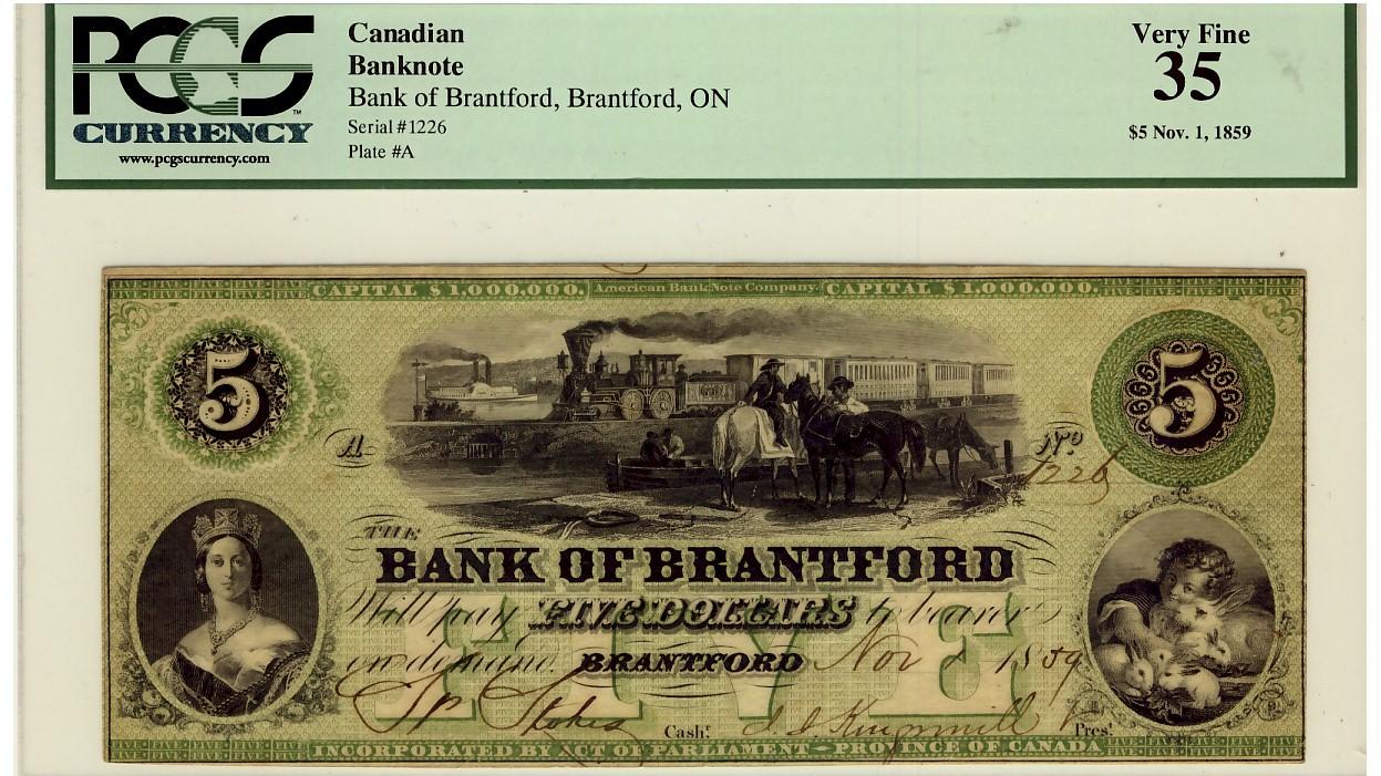 Bank of Brantford 1859 $5 1226 CH-40-10-04-08 PCGS VF35