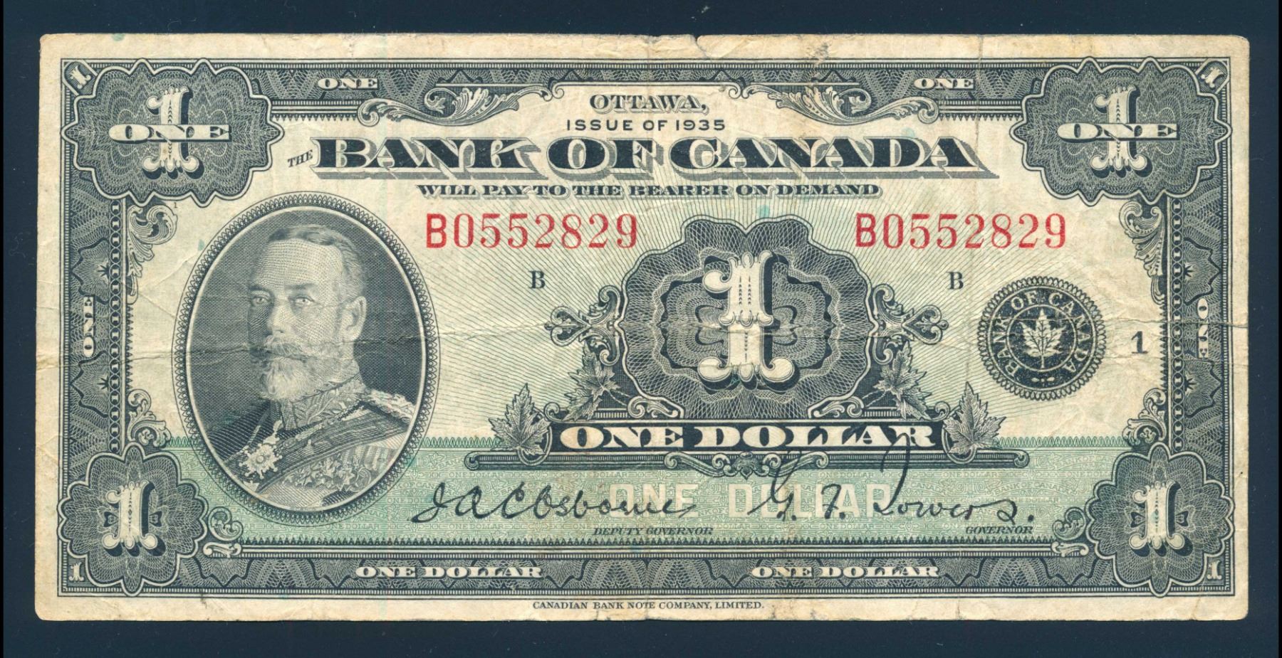Bank of Canada $1.00 1935 English BC-1 Banknote Very Good+