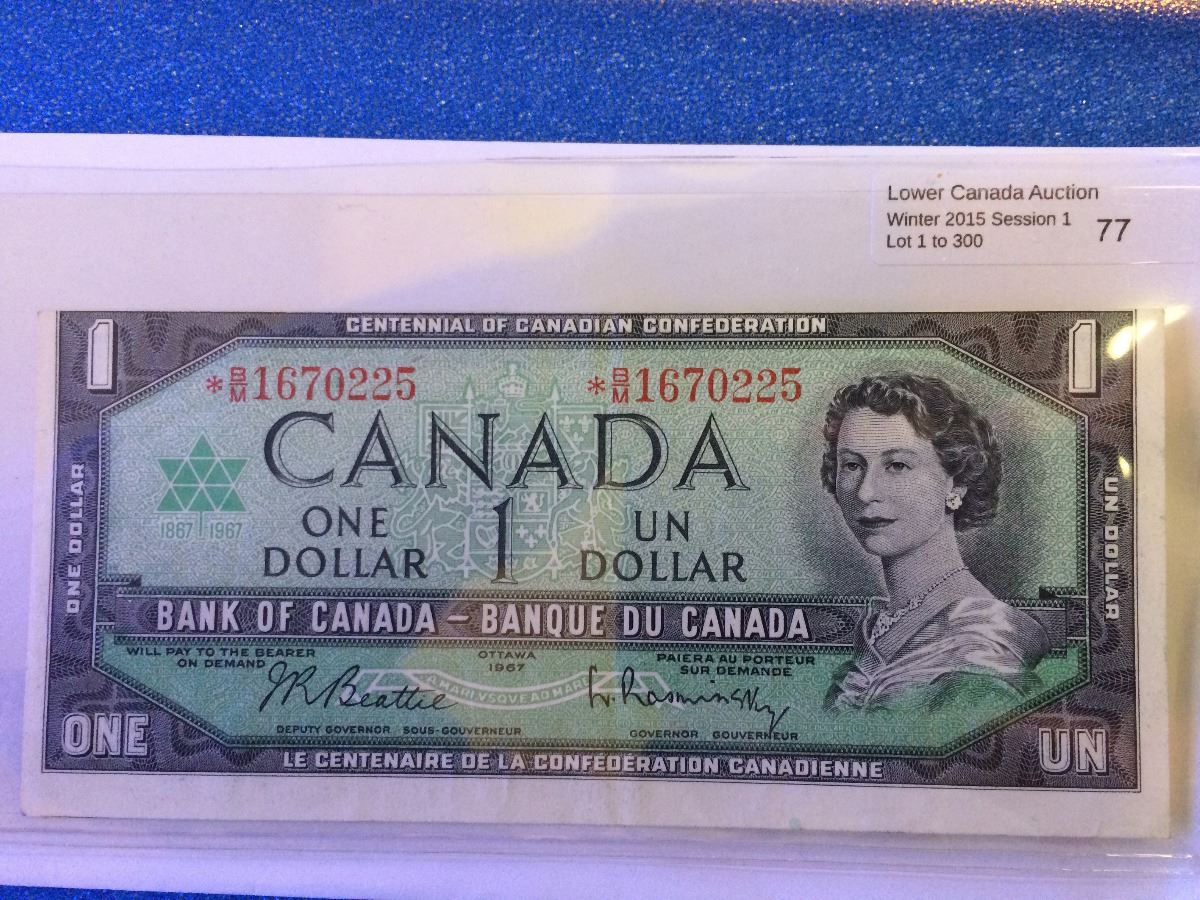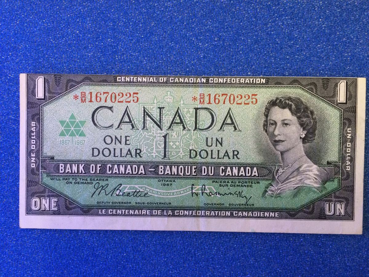 Bank of Canada; $1.00 replacement note 1967 *B/M1670225 error cut out of registry.