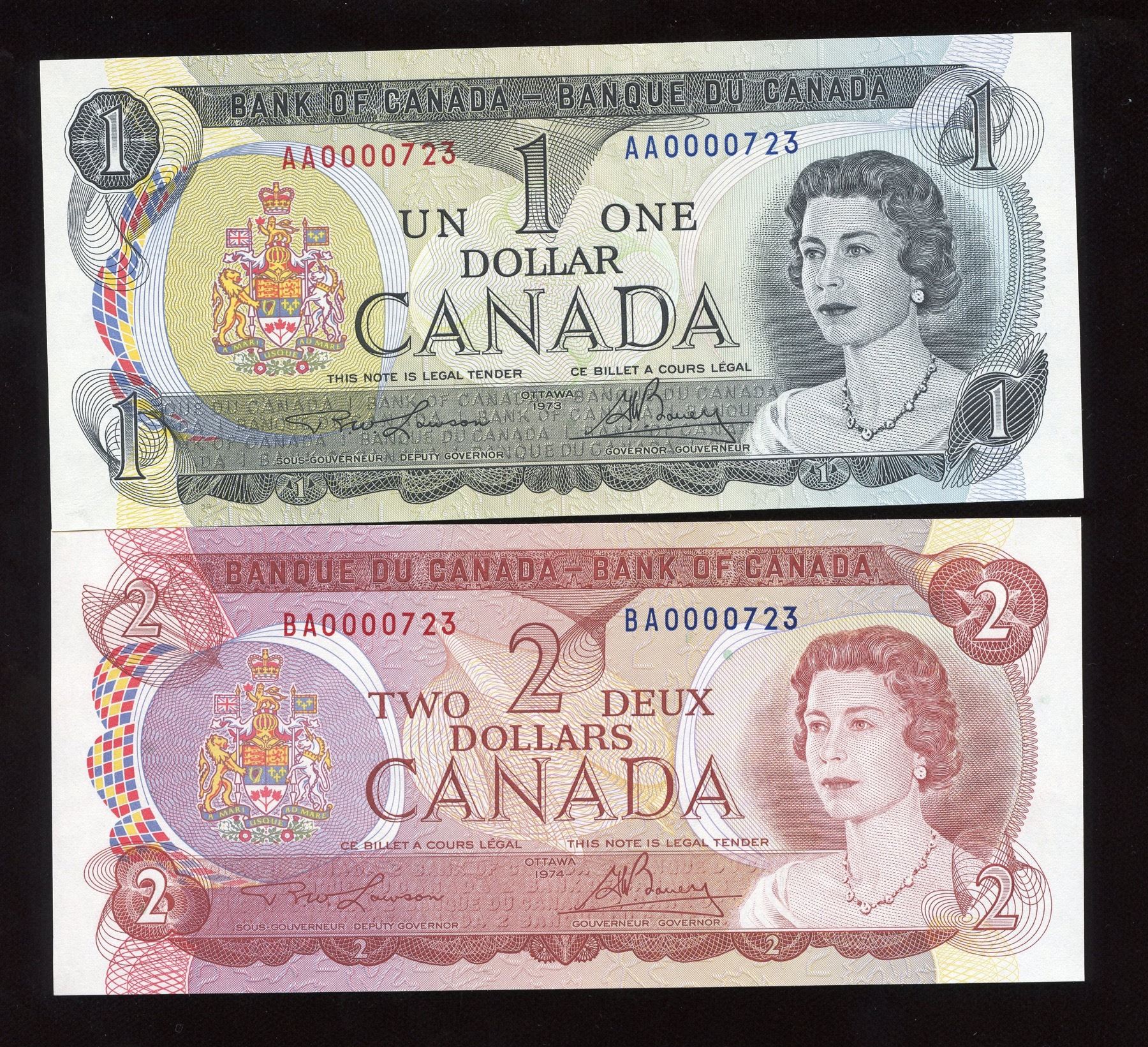 Bank of Canada $1 & $2 Low Serial Numbered Notes