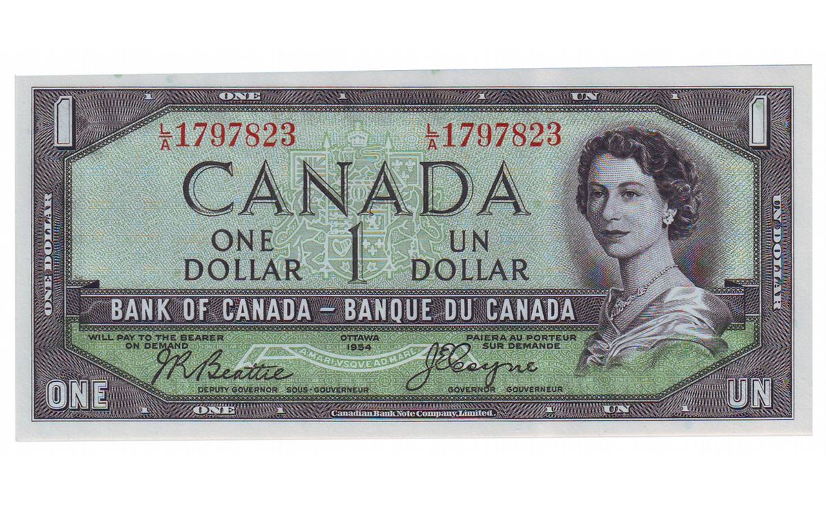 Bank of Canada; 1 dollar 1954 Devil's Face BC-29b Beattie Coyne L/A1797823 PCGS UNC-64PPQ.