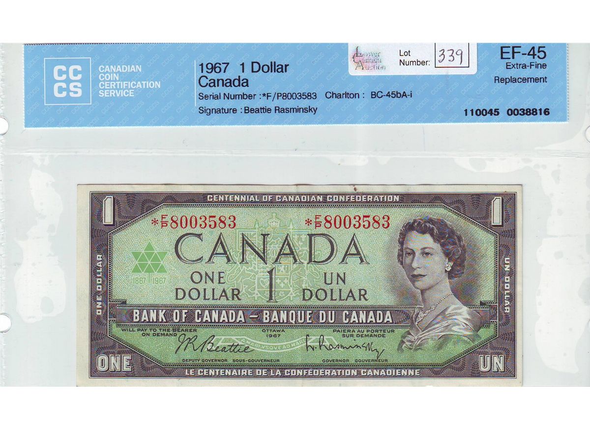 Bank of Canada; 1 dollar 1967 Replacement BC-45bA-i Beattie Rasminsky *F/P8003583 CCCS EF-45.