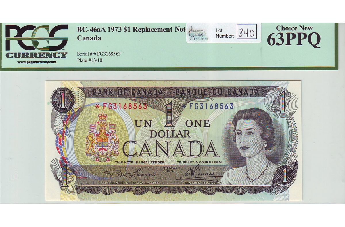 Bank of Canada; 1 dollar 1973 Replacement BC-46aA Lawson Bouey *FG3168563 PCGS UNC-63PPQ.