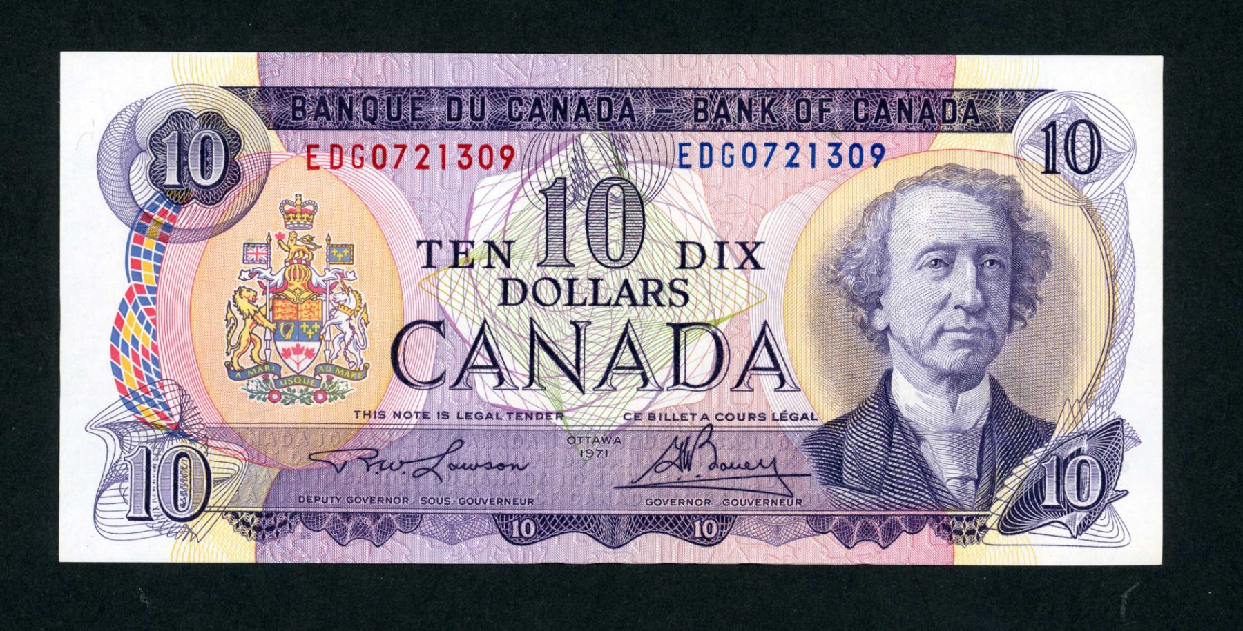 Bank of Canada $10.00 1971 Error Banknote Mishandled Unc.
