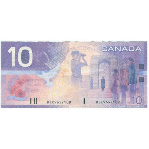 Bank of Canada, $10.00 Insert note 2003, grade Very-Fine, Charlton # BC-63cA, signature Jenkins Dodge, serial BEK9657109, insert range 9.495M - 9.675M. Problem free note, very rare and undervalued in catalogue.