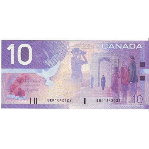 Bank of Canada, $10.00 note 2001, graded Gem UNC-65, BC-63c, signature Knight Dodge, serial BEK1842122. This is the regular note not the insert.
