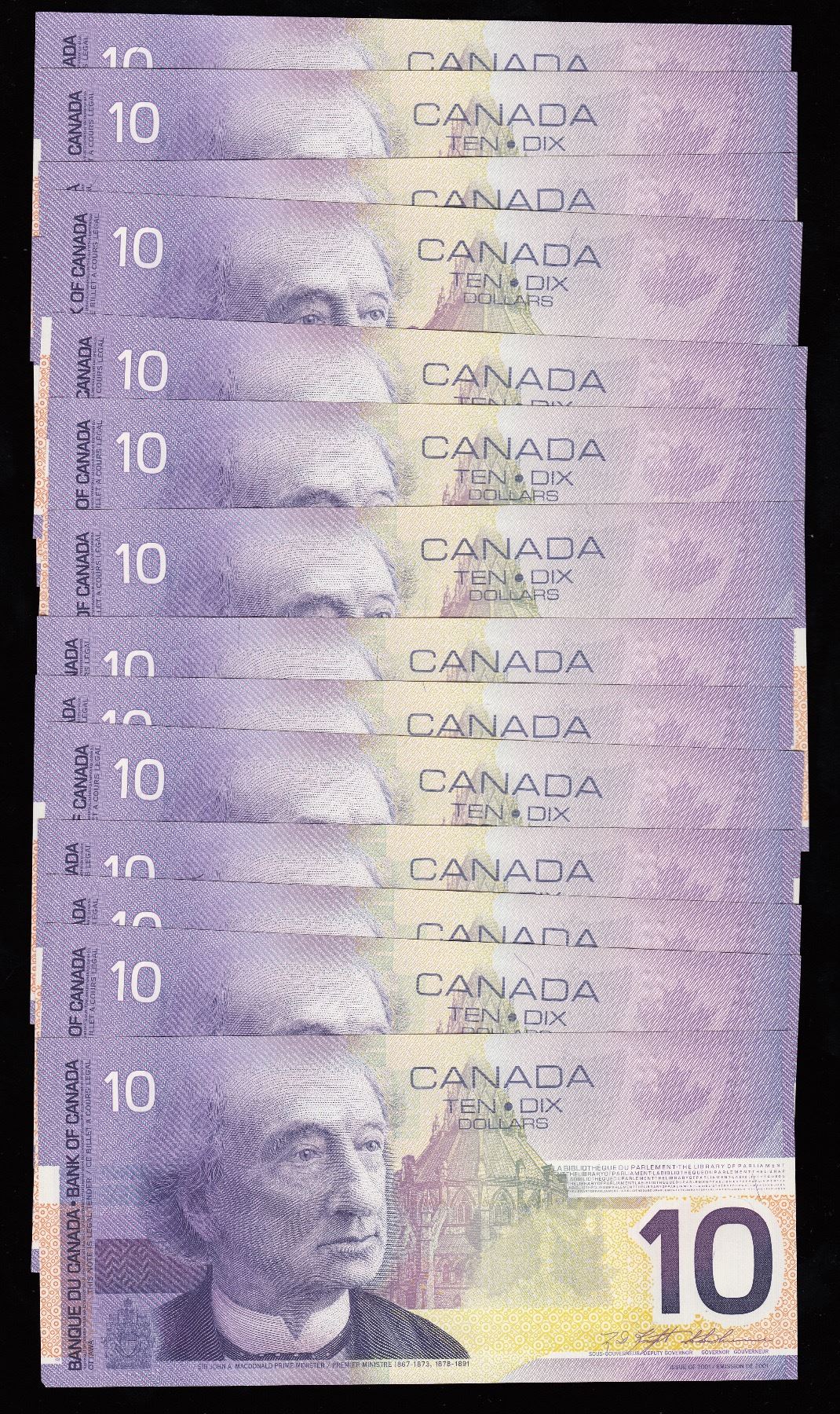 Bank of Canada $10, 2001 - Lot of 15 Consecutive