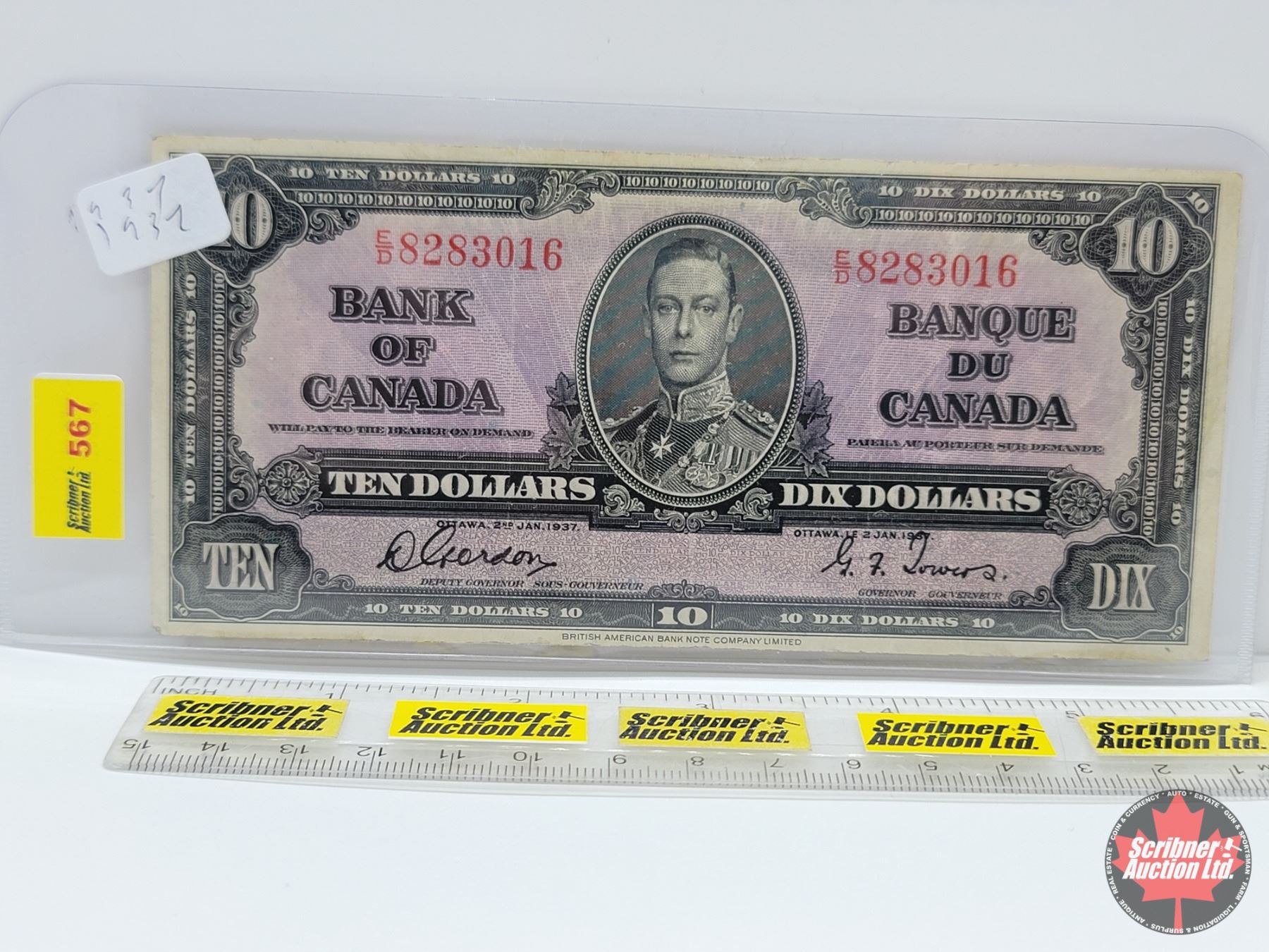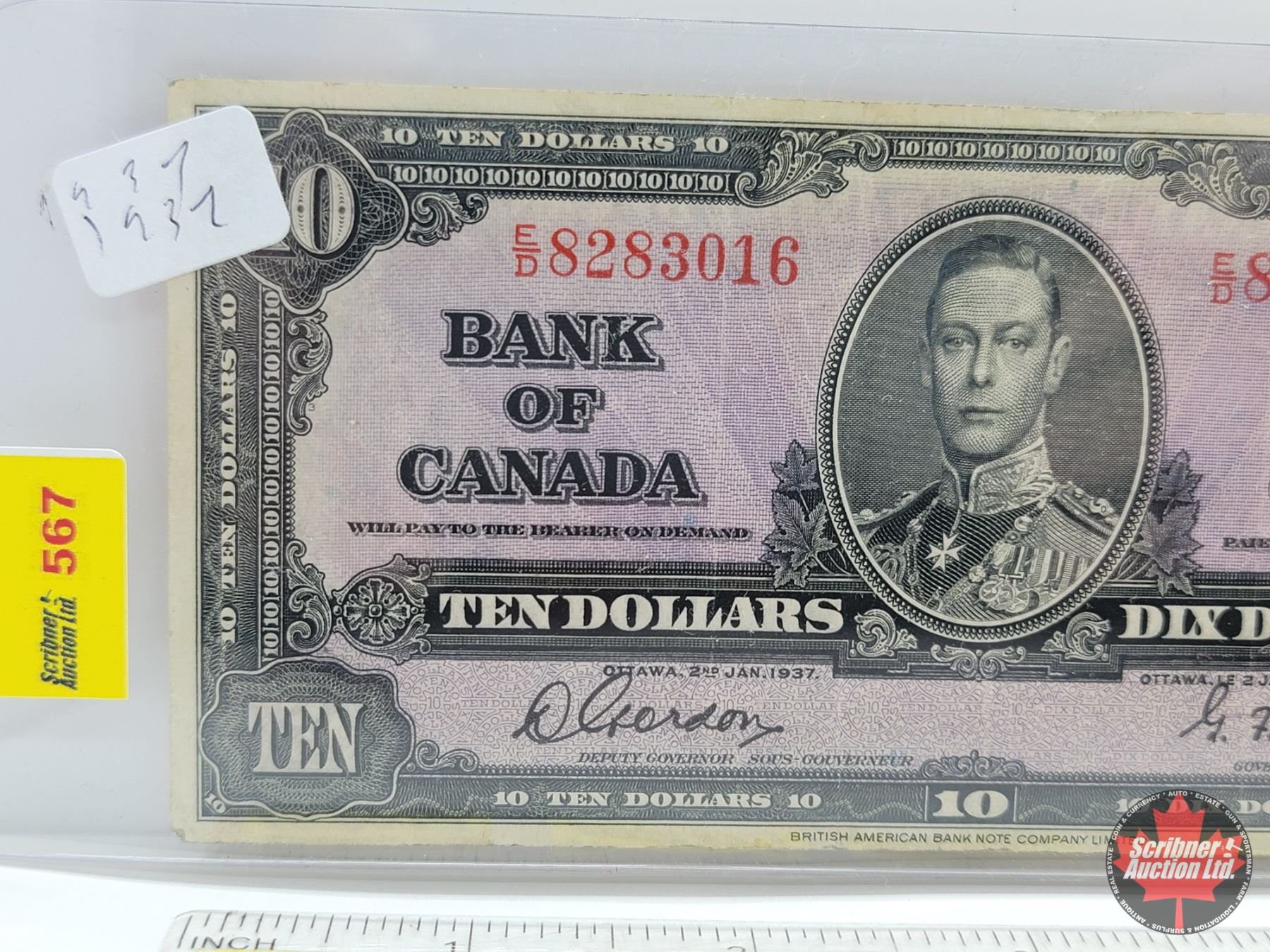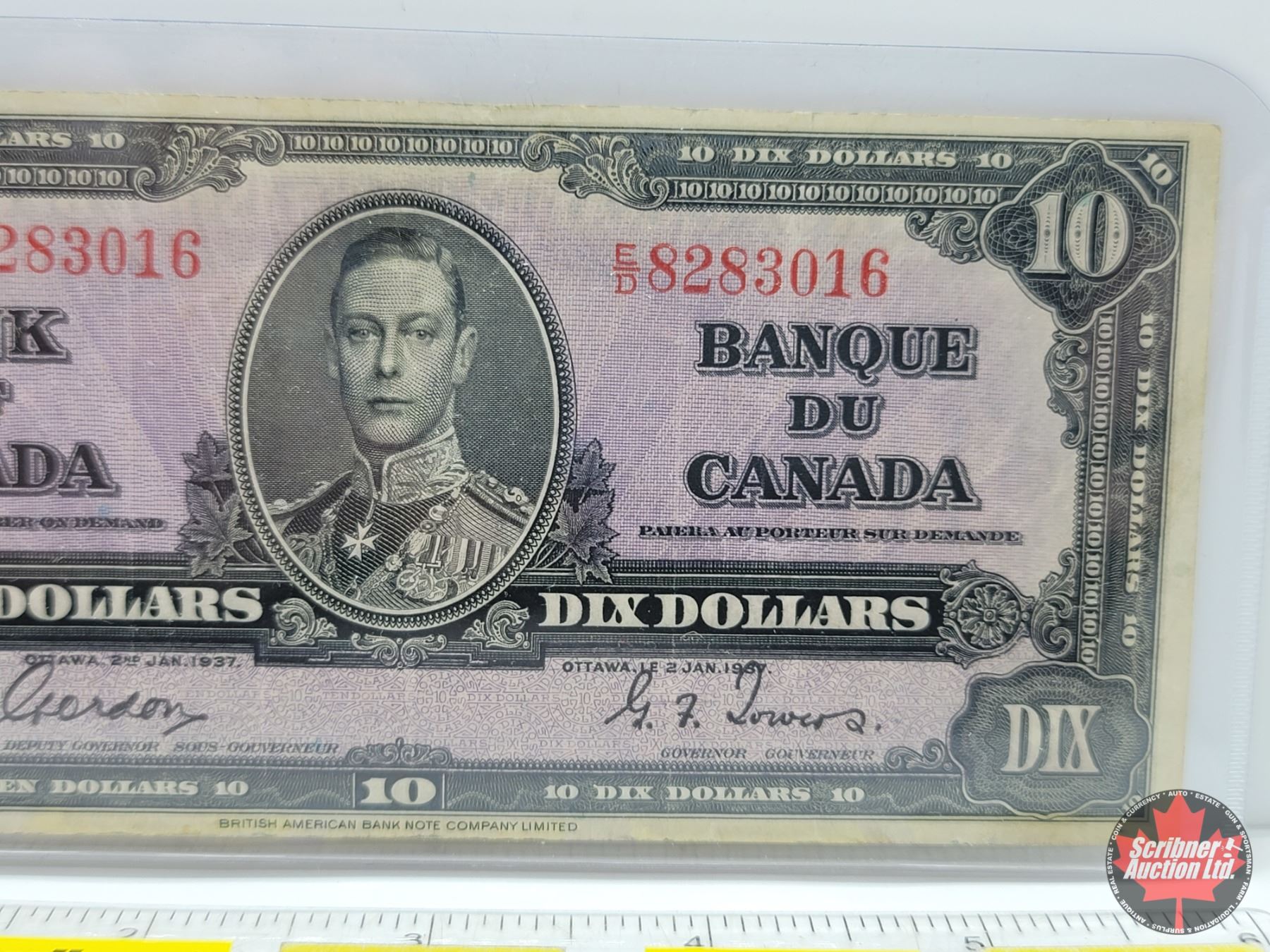 Bank of Canada $10 Bill 1937 : Gordon/Towers #ED8283016 (See Pics for Varieties, Conditions, Serial Numbers & Signatures)