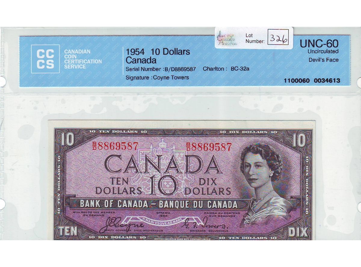 Bank of Canada; 10 dollars 1954 Devil's Face BC-32a Coyne Towers B/D8869587 CCCS UNC-60.