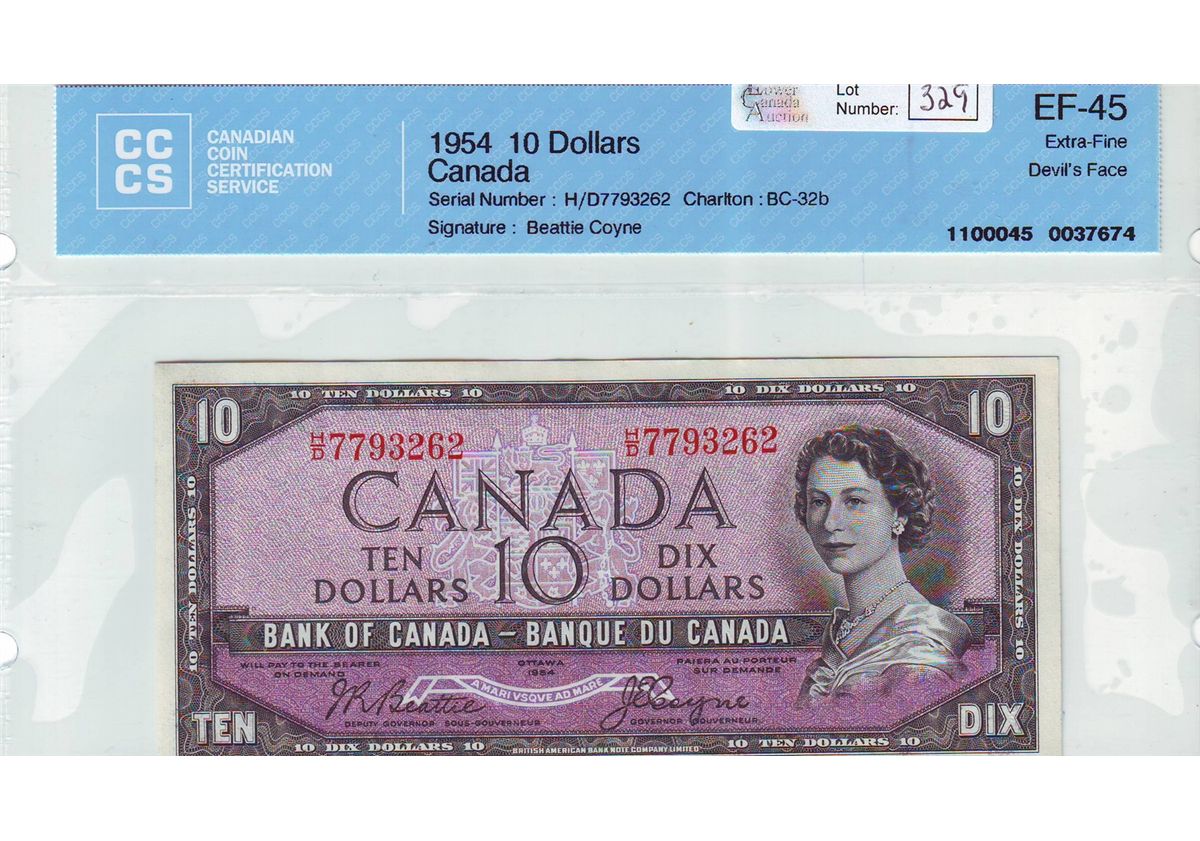 Bank of Canada; 10 dollars 1954 Devil's Face BC-32b Beattie Coyne H/D7793262 in CCCS EF-45.