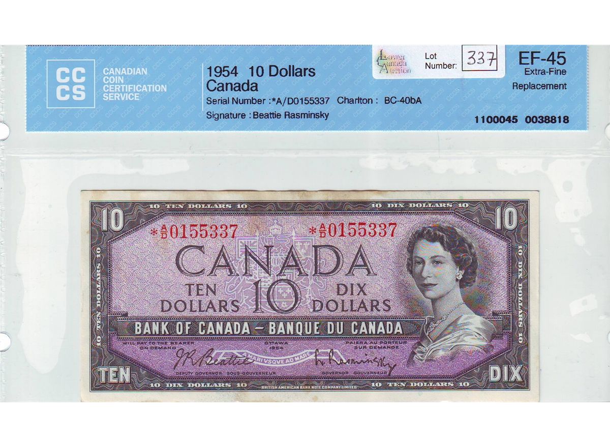 Bank of Canada; 10 dollars 1954 Modified Replacement BC-40bA Beattie Rasminsky *A/D0155337 CCCS EF-45.