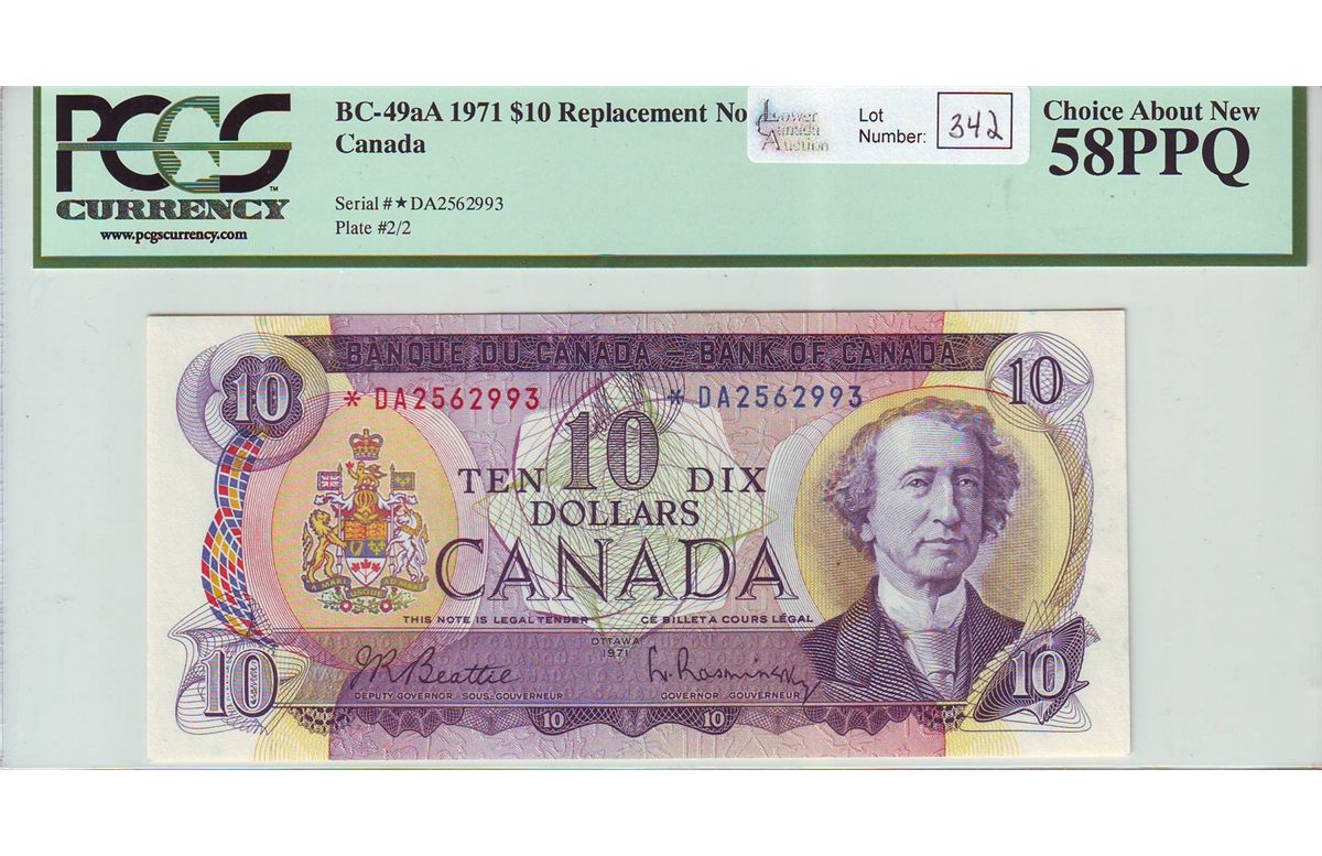 Bank of Canada; 10 dollars 1971 Replacement BC-49aA Beattie Rasminsky *DA2562993 PCGS AU-58PPQ.