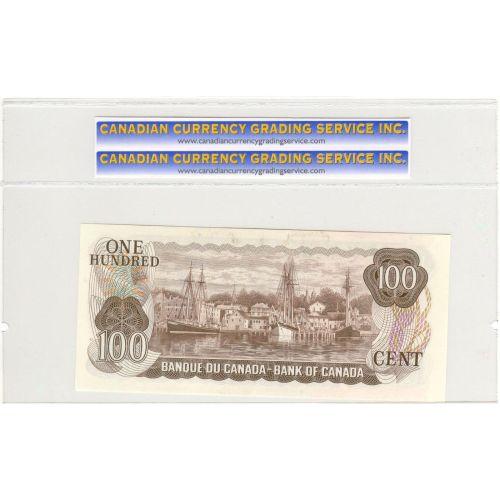 Bank of Canada, $100.00 note 1975, graded CCGS UNC64, Charlton # BC-52b, signature Crow Bouey, serial AJJ2953803.