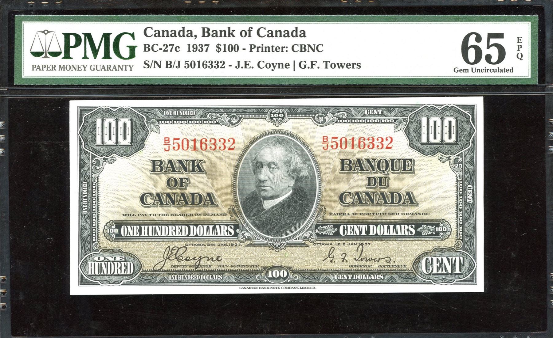 BC-27c. PMG Gem Unc. 65EPQ. S/N: B/J5016332.