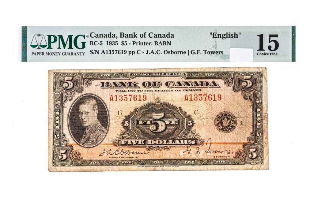 Bank of Canada 1935 $5, Osborne | Towers Choice Fine 15 PMG