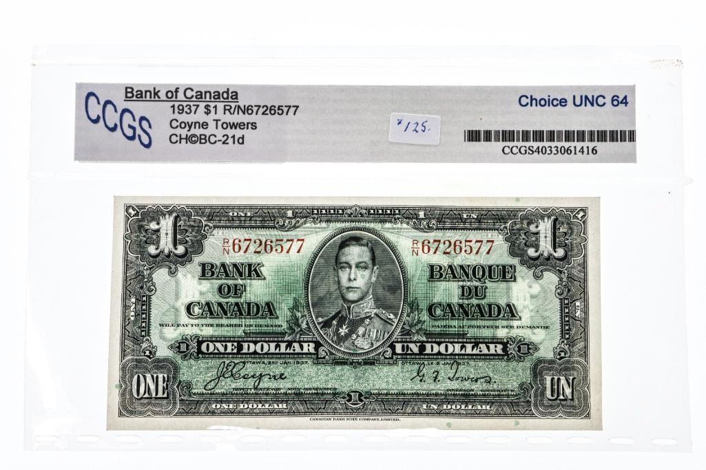 Bank of Canada 1937 $1 - Coyne Towers - Choice UNC 64 Certified