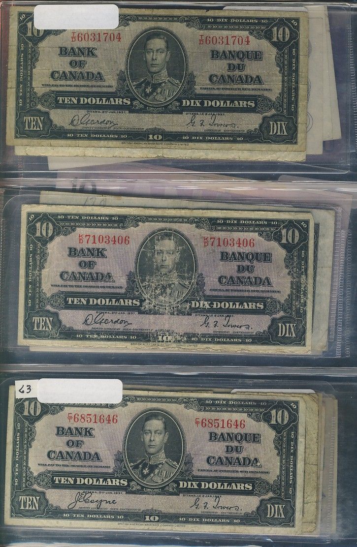Bank of Canada 1937-2008 $10 banknote Lot. Includes 1937(6), 1954 DF, 1954 Mod(3), 1971(5), 1989(2)
