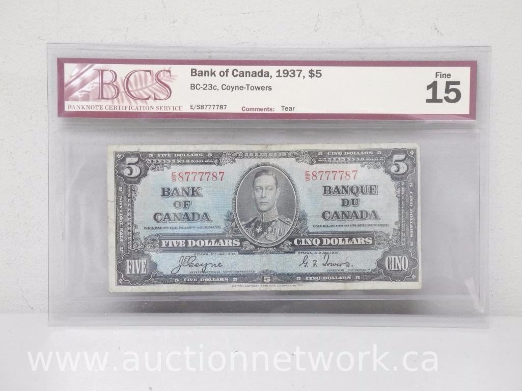 Bank of Canada 1937 $5.00 Five Dollars Coyne-Towers Fine 15 BCS - Bc-23c