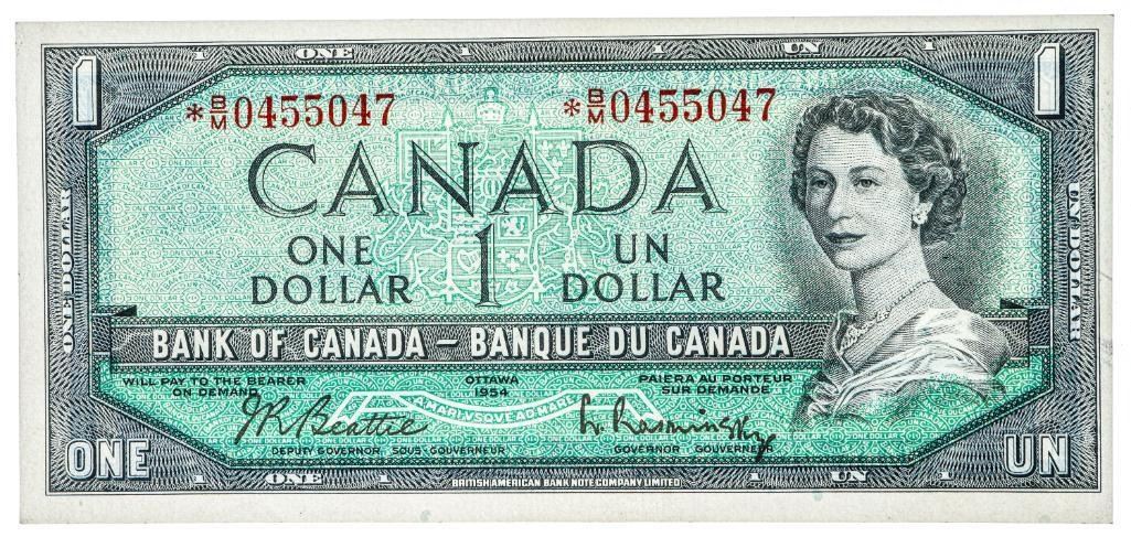 Bank of Canada 1954 $1 * Replacement (BM) no FNP GEM UNC
