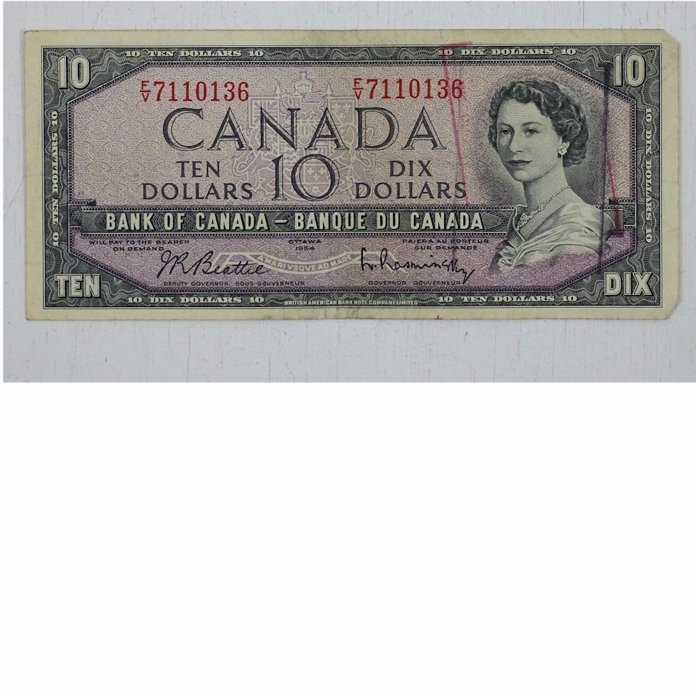 Bank of Canada 1954 $10 BC-40b note F/V Prefix Beattie/Rasminsky Signature
