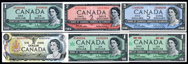 Lot of 6 notes. Includes 1954 Modified Hair design $1; $2 and $5, P-75b; 76b; and 77b, Choice AU to Choice Uncirculated, also included are two different $1 1967 Issues and a $1 1973 issue which is also the Pick Plate note, All are in Choice AU to Gem Uncirculated. Two different notes memorialized in the SCWPM are in this lot.