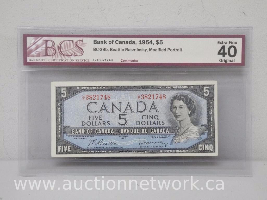 Bank of Canada 1954 $5.00 Five Dollars Note 1954 - Beattie/Rasminsky Mod.Portrait EXTRA FINE 40 BCS