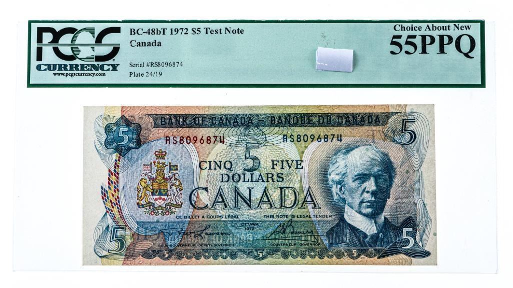 Bank of Canada 1972 $5 TEST NOTE Choice 55