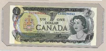 Bank of Canada 1973 One Dollar Note -Now Recalled Out of Circulation, Scenes of Canada Series, On Gi
