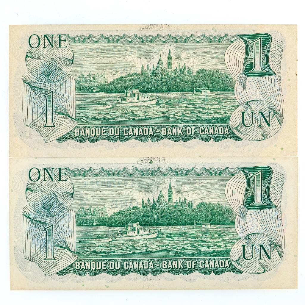 Bank of Canada 1973 One Dollar - Sequential Pair UNC