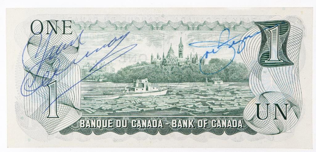 Bank of Canada 1973 One Dopllar - Autographed - Yvon Cournoyer & John Ferguson SR.