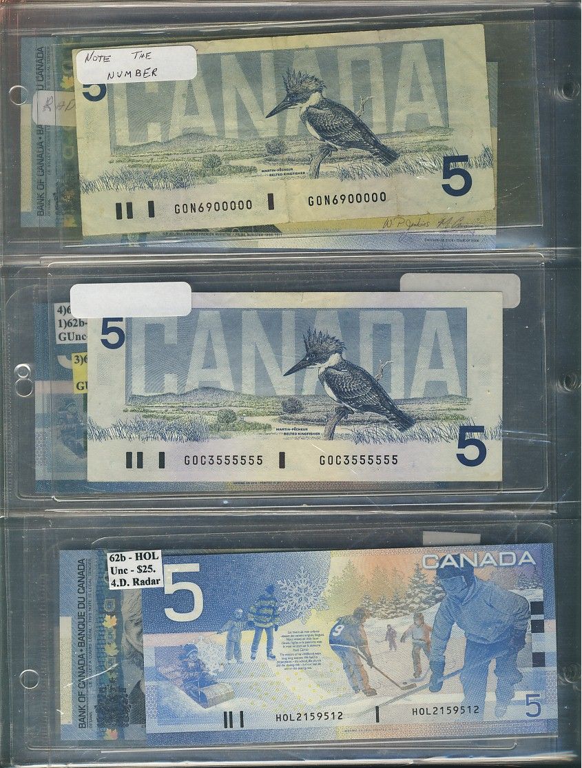 Bank of Canada 1986-2010 $5 Banknote Lot. Includes RADAR issues & some particular number series. 43 notes VF to UNC. (fc $215)