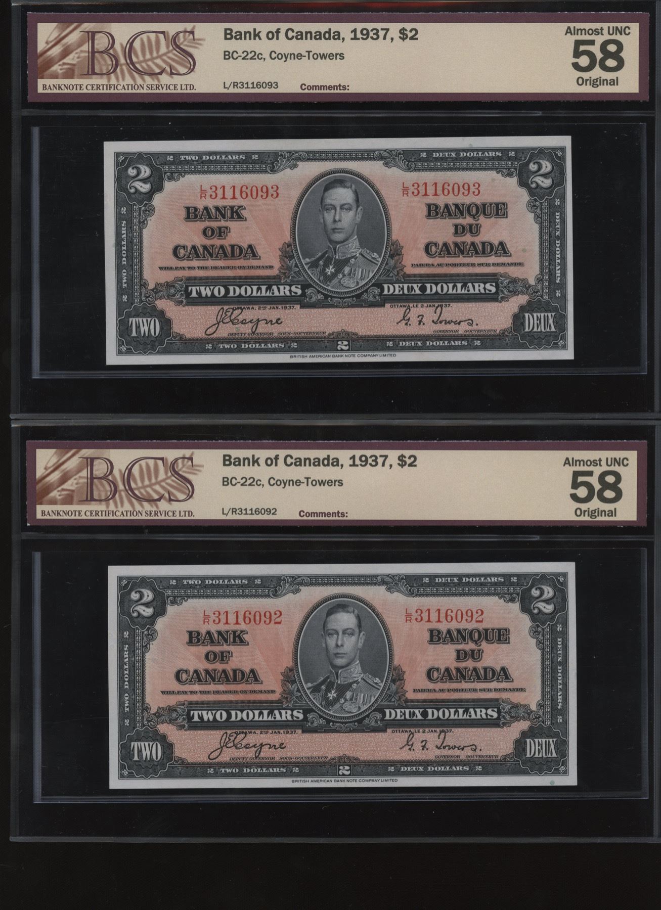 BC-22c. BCS AU58's, original. Transitional Prefix. S/N:L/R3116092-93. 2 Pcs.