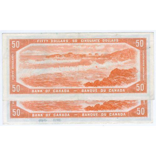 Bank of Canada, 2 x $50.00 note 1954, EF