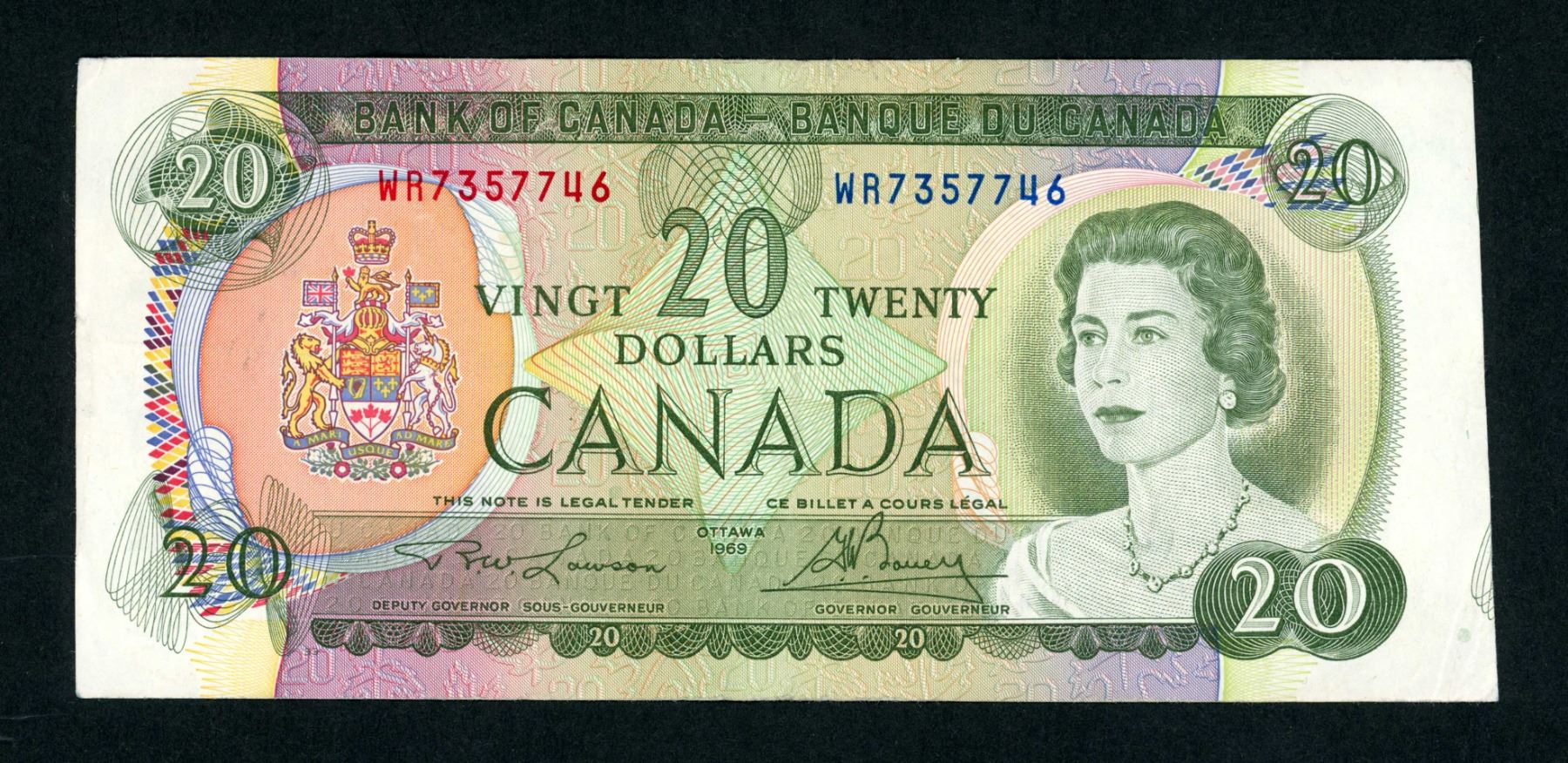 Bank of Canada $20.00 1969, BC-49 Error Banknote Very Fine